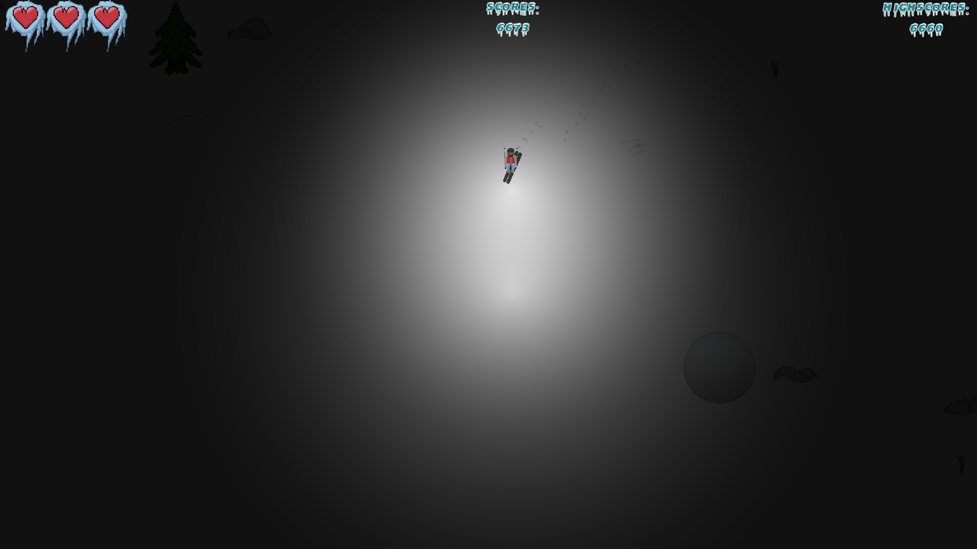 Love the horror vibe! I might not have played enough, but I didn't see any zombies really, and I think it would be cool if there were zombie skiers that chased you of something like that